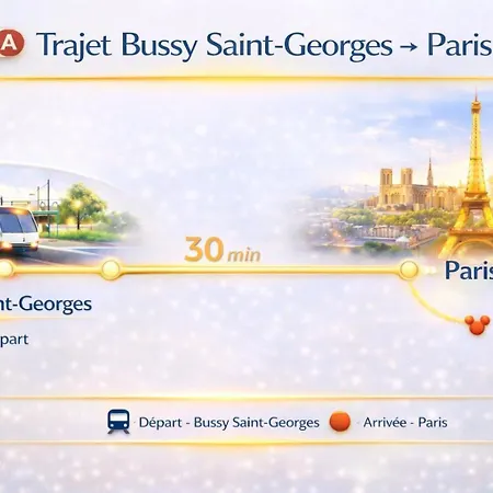 寝室1室のT2D Apartment - Suite Blg Proche Disneyland Paris ブシ-・サン ・ジョルジュは,BussySaintGeorges鉄道駅から400メ-トルで,イル・ミステリュ-ズ池から歩いて6分の場所にあります. ビジネスでもレジャ-でもWiFiを利用することができます.